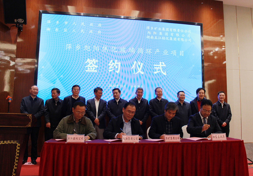 签约仪式上,萍矿集团副总经理江苏波、旭阳集团副总裁李庆华、湖南五江轻化集团副总裁彭灿华,代表三方共同签署了项目合资合作协议;湘东区常务副区长汤雪林与萍矿集团副总经理江苏波、旭阳集团副总裁李庆华、湖南五江轻化集团副总裁彭灿华,代表四方共同签署了招商引资协议;萍乡市副市长杨劲松与萍矿集团副总经理江苏波、旭阳集团副总裁李庆华、湖南五江轻化集团副总裁彭灿华,代表四方共同签署了招商引资协议。